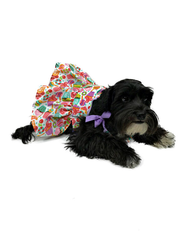 Sweet and ready for the runway. Your best friend will be the star of the show with this candy patterned sundress. Handmade from fresh cotton, knot-adjustable shoulder straps make it a breeze to wear during those hot summer months. Complete with tulle on the skirt for a fun flounce and a zipper closure for comfort.