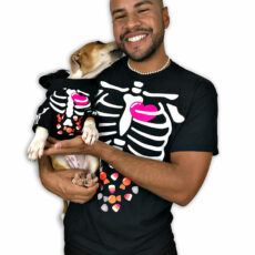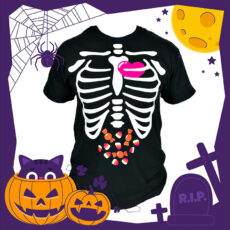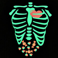Surprise your friends this Halloween and Day of the Dead season with this glow in the dark skeleton T-Shirt. It features a heart and seasonal candies in the design! Pet version is also available on our website!
