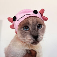 Your cat will look super cute with this handmade pink Axolotl hat featuring quality all vegan materials.